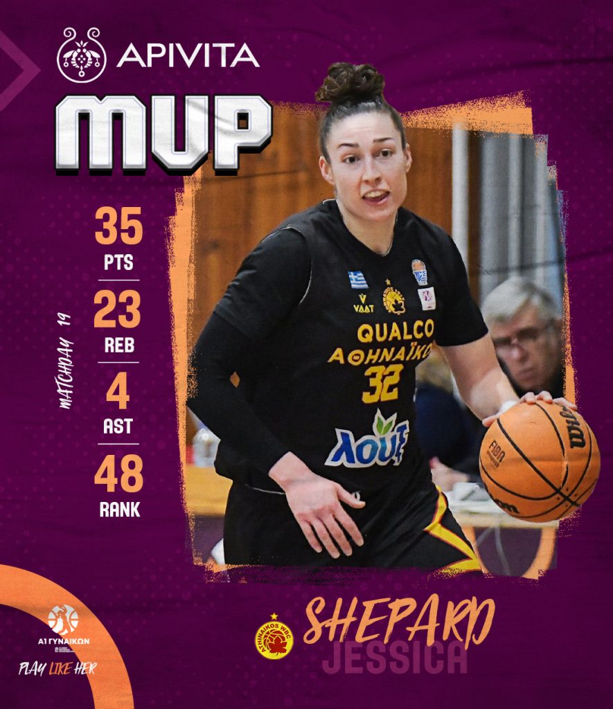 Η Τζέσικα Σέπαρντ συνεχίζει να εντυπωσιάζει και αναδείχθηκε Apivita MVP της 19ης Αγωνιστικής, ενώ η Χριστίνα Αναστασοπούλου είναι η Apivita MVP Νext Gen της 19ης Αγωνιστικής.