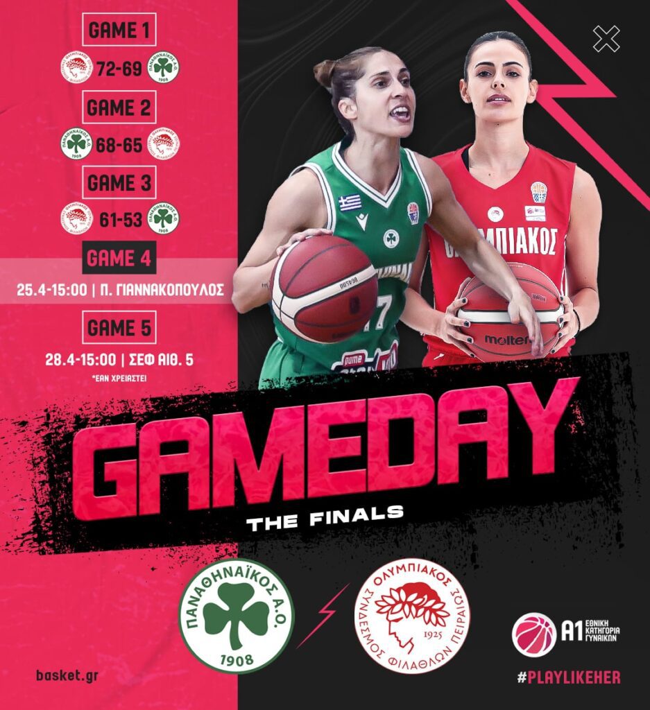 Οι τελικοί των Play Off του πρωταθλήματος της Α1 Γυναικών συνεχίζονται σήμερα (15.00, Π.Γιαννακόπουλος) με τον Παναθηναϊκό να υποδέχεται τον Ολυμπιακό στο τέταρτο ραντεβού των δύο ομάδων.