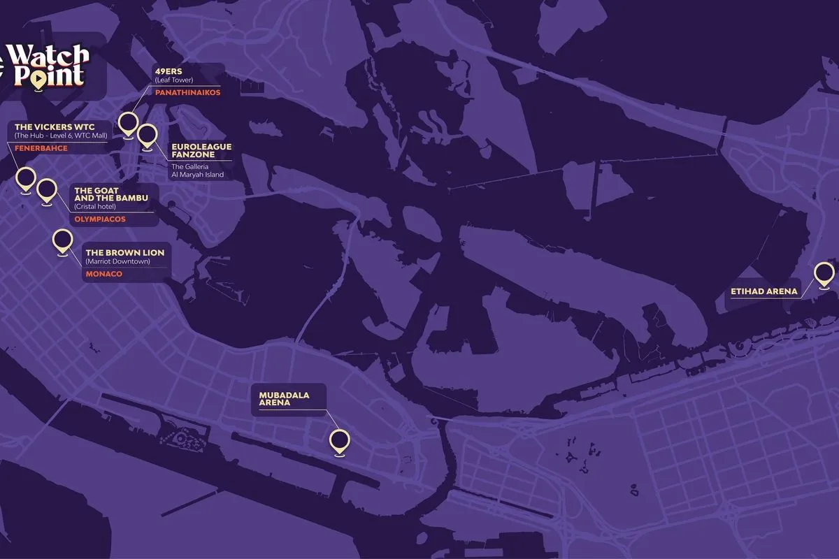 Την ευκαιρία να παρακολουθήσουν την ομάδα τους και εκτός γηπέδου θα έχουν οι φίλαθλοι κάθε ομάδας που βρίσκεται στο Final Four της Euroleague. Η διοργανώτρια αρχή ετοιμάζει ειδικά WatchPoint σε επιλγμένες τοποθεσίες στο Άμπου Ντάμπι, για τους οπάδους του Παναθηναϊκού, του Ολυμπιακού, της Φενερμπαχτσέ και της Μονακό.