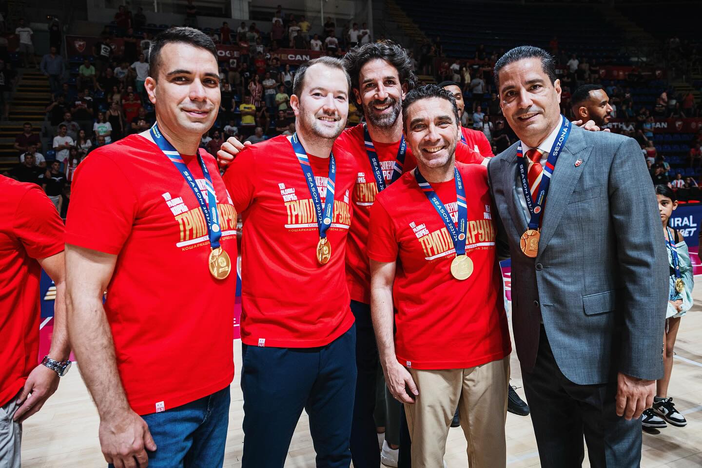 Για τη στήριξη του κόσμου: «Αν μου πείτε να ξεχωρίσω ένα στοιχείο που είναι διαφορετικό απ’ τις άλλες δύο ομάδες που έχουμε εργαστεί, είναι η “δίψα” του κόσμου να δει την ομάδα ψηλά. Όχι ότι στον Ολυμπιακό ή στη Μακάμπι δεν έχει “δίψα” ο κόσμος. Όταν πήγαμε εμείς το 2014 στον Ολυμπιακό, το 2012 και το 2013 η ομάδα είχε πάρει back-to-back την Ευρωλίγκα. Η Μακάμπι είναι παραδοσιακά ένα πολύ μεγάλο κλαμπ, που έχει πάρει Ευρωλίγκες στο παρελθόν και έχει κάνει επιτυχίες. Στον Ερυθρό Αστέρα, η τελευταία φορά που η ομάδα πέρασε στα play-offs ήταν, αν δεν κάνω λάθος, το 2014, όπου έπαιξε με την ΤΣΣΚΑ Μόσχας και αποκλείστηκε με 3-0 νίκες. Ο κόσμος εδώ “διψάει” για μια καλή χρονιά, μια διάκριση και αυτό το δείχνει. Πέρυσι, ενώ δεν είχε ξεκινήσει καλά η ομάδα, είχαμε σε όλα τα ματς sold-out, 20 χιλιάδες κόσμο και συνολικά 13 χιλιάδες διαρκείας. Όταν η ομάδα ήταν 14η-15η και ήταν ολοφάνερο ότι δεν έχει τύχη να μπει στα play-in, εγώ περίμενα πως θα έχουμε 4-5 χιλιάδες φιλάθλους, αλλά είχαμε 13-14 χιλιάδες σε κάθε ματς, χωρίς να έχουμε κανέναν στόχο στην Ευρωλίγκα. Αυτό, για εμένα, δείχνει πολλά. Η ομάδα έχει μια στήριξη είτε πάει καλά, είτε όχι».
