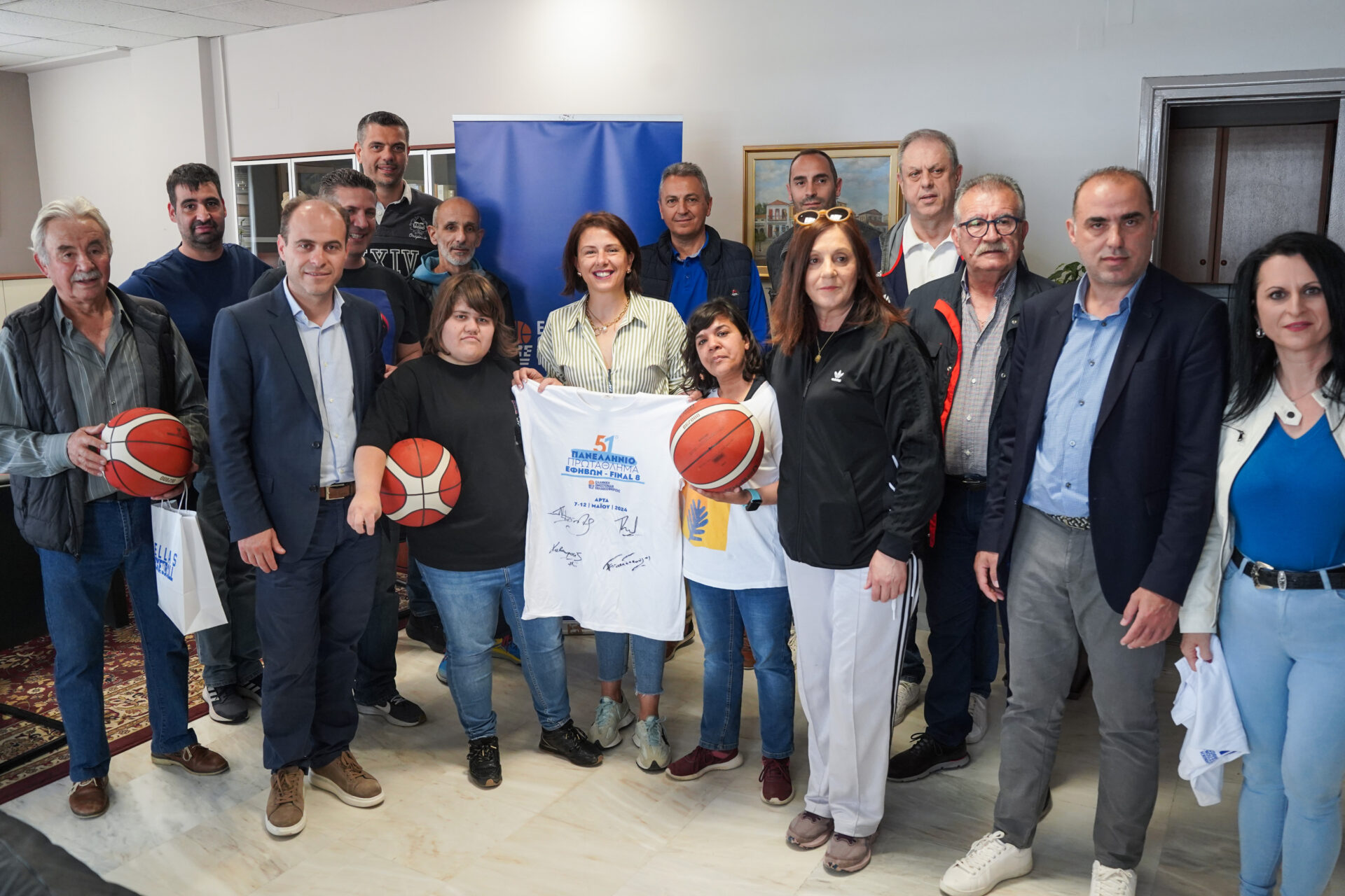 Στο γραφείο του δημάρχου Άρτας, Χριστόφορου Σιαφάκα, προσήλθαν παιδιά και εκπρόσωποι του ΚΔΑΠ-μεΑ δήμου Αρταίων, του ΚΔΗΦ «Αγία Θεοδώρα» και του Συλλόγου «Αγκαλιά». Ο Νίκος Σταυρόπουλος, ο Κώστας Τσαρτσαρής, ο Γιάννης Καλαμπόκης και ο Κώστας Παπαδόπουλος συνομίλησαν με τα παιδιά, υπέγραψαν φανέλες και τους παρέδωσαν μπάλες μπάσκετ.