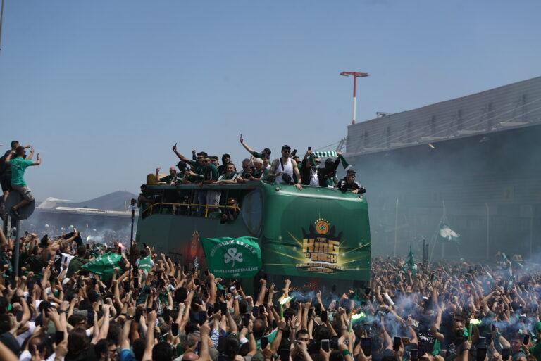Μετά την προσγείωση στο «Ελευθέριος Βενιζέλος» η αποστολή του Παναθηναϊκού μπήκε στο ανοιχτό λεοφωρείο και ξεκίνησε με προορισμό το κλειστό του ΟΑΚΑ. Μετά από αρκετές ώρες το λεοφωρείο έφτασε με τον κόσμο να είναι εκστασιασμένος.