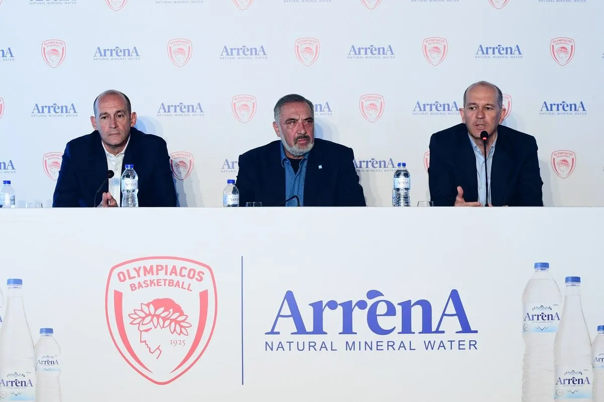 Ο Ολυμπιακός παρουσίασε τον νέο χορηγό της ομάδας, την εταιρεία “ΑρρένΑ”, με την οποία συμφώνησε για τρία χρόνια. Στο πλαίσιο της συνέντευξης Τύπου, οι πρόεδροι των Πειραιωτών, Γιώργος και Παναγιώτης Αγγελόπουλος, μίλησαν για την εξέλιξη των συνομιλιών για το ΣΕΦ και το όραμά τους για την ανάπλαση του περιβάλλοντος χώρου.