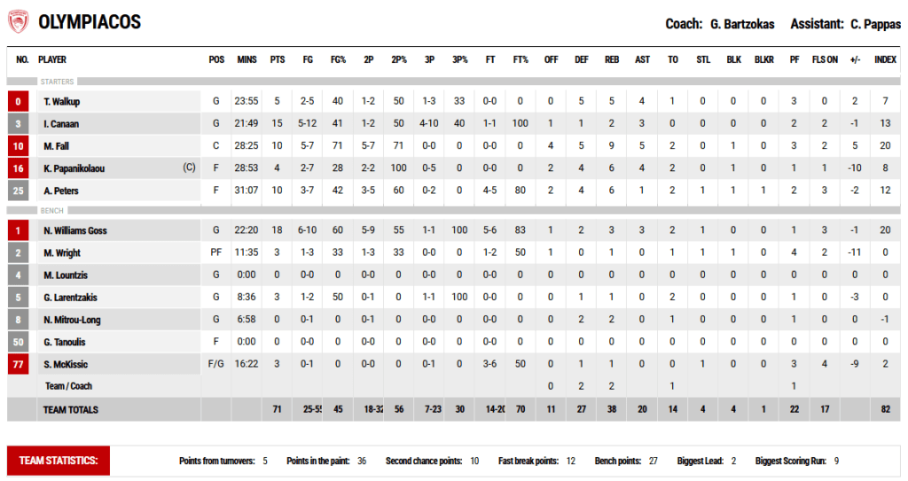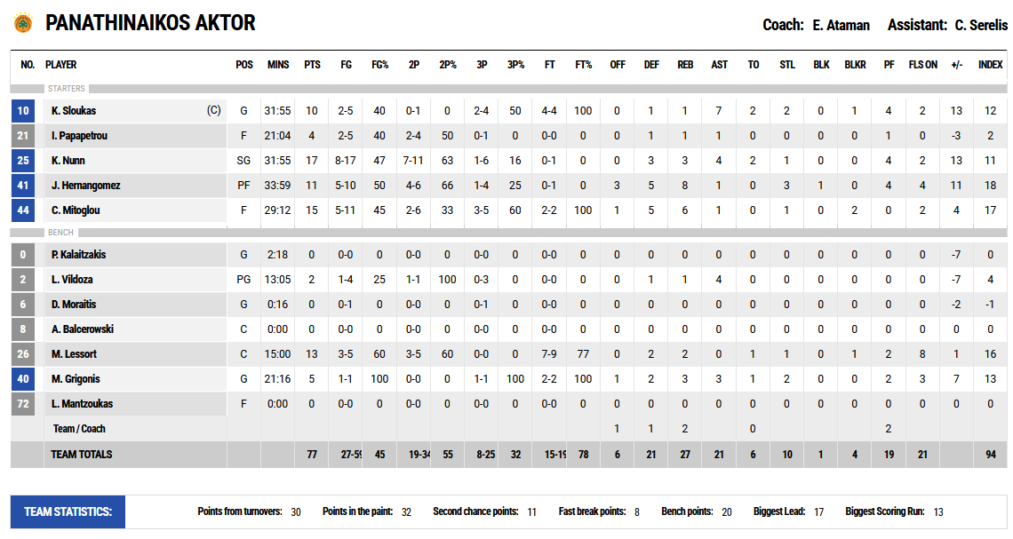 Τα δεκάλεπτα: 23-16, 38-33, 59-55, 77-71.