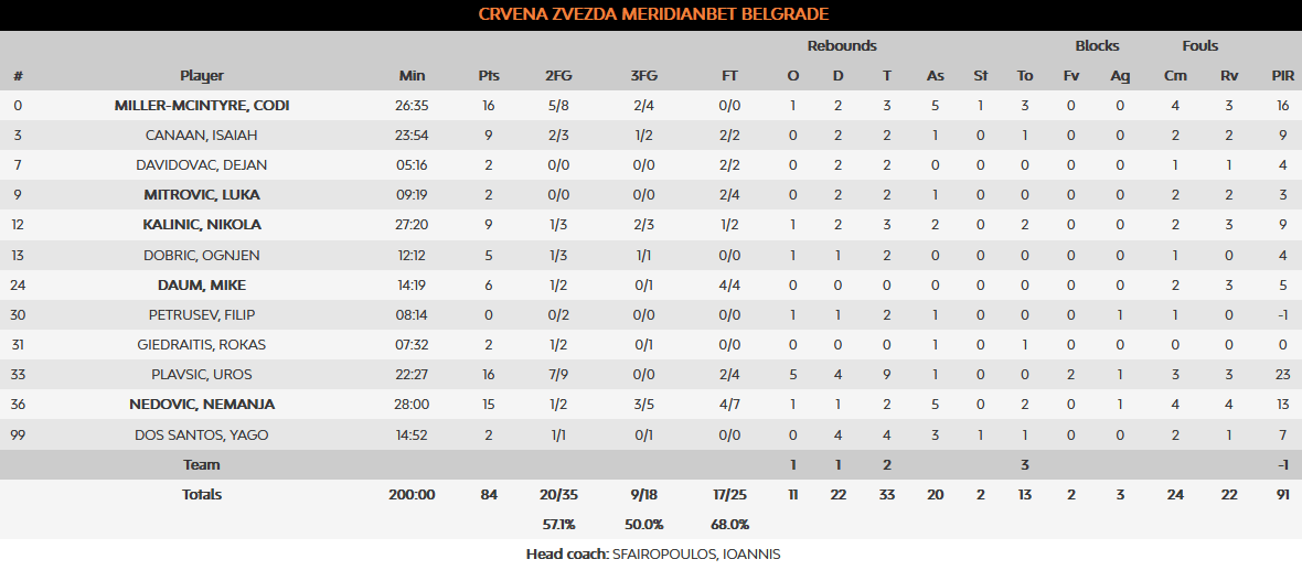 ΤΟ ΣΤΑΤΙΣΤΙΚΟ ΤΟΥ ΜΑΤΣ: Ο Ερυθρός Αστέρας έχασε παιχνίδι με 9/18 τρίποντα, 20 ασίστ και 13 λάθη.